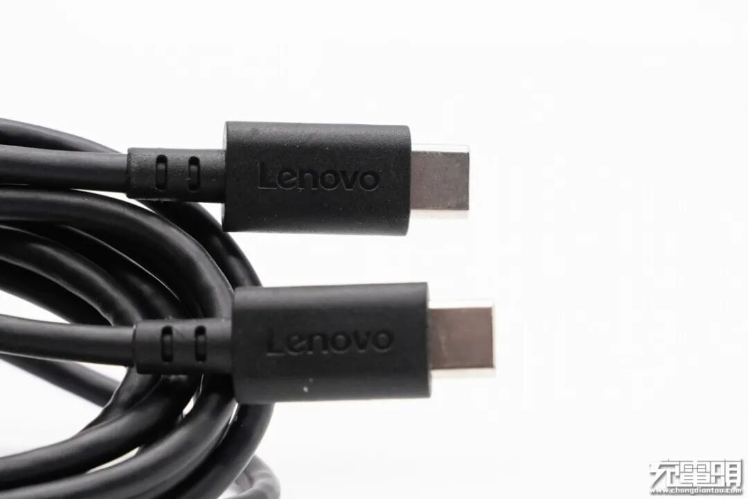 线头采用塑料外壳,外壳磨砂方便插拔使用,此外凹印Lenovo品牌logo。