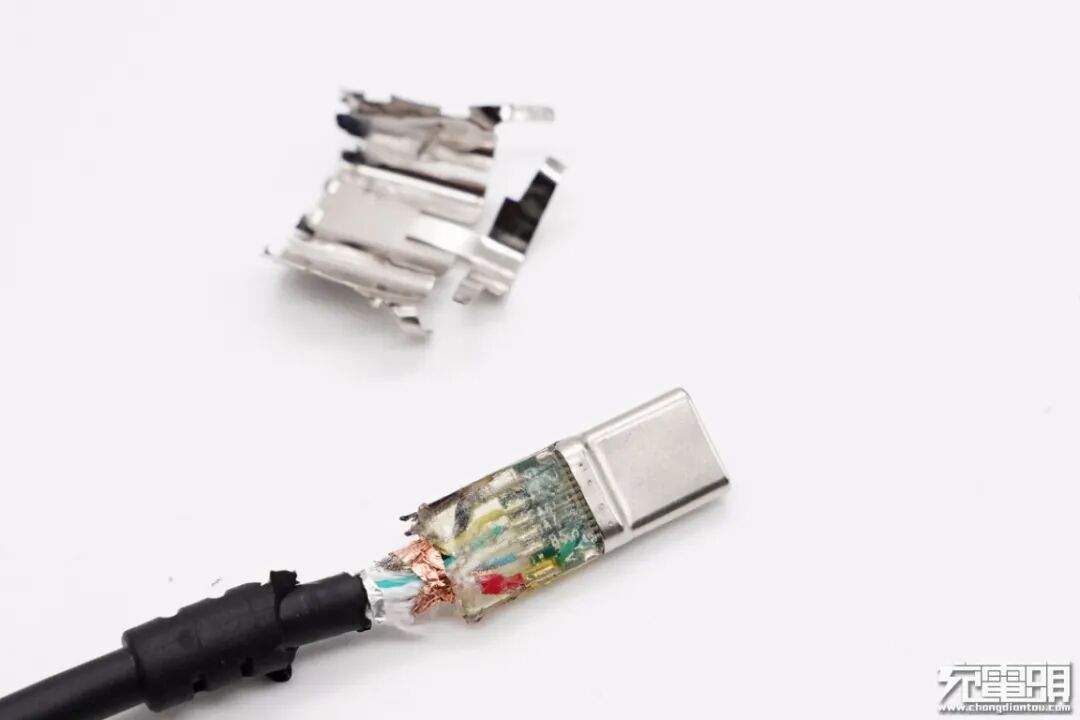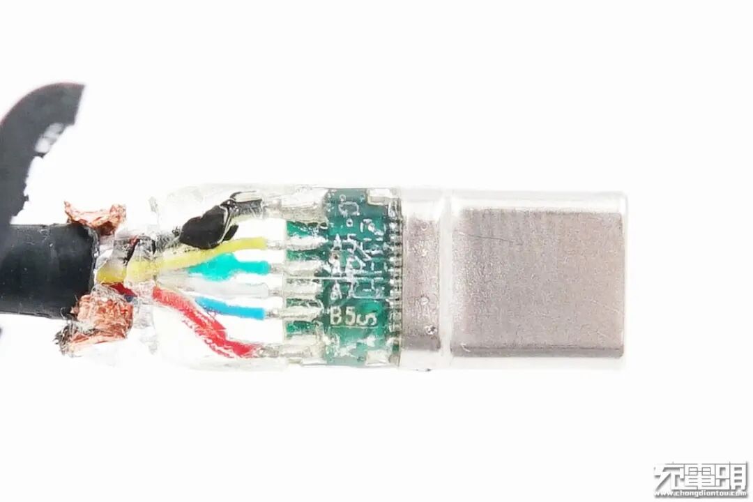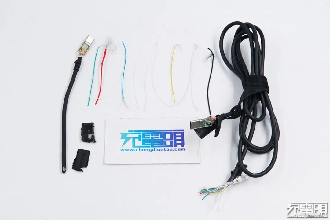 这根数据线采用TPE黑色外皮,很耐脏,适合长期使用,线长1.8米可应付大多数使用场景。而如今快充技术迅猛发展,越来越多100W高功率充电器不断被推出,普通的3A线正在被时代淘汰。联想充电套装附带这么一根数据线,对用户来说能拿来给更多的设备进行充电使用,无需再购置新100W快充线。下面我们就对其进行拆解,看看其内部设计做工如何。