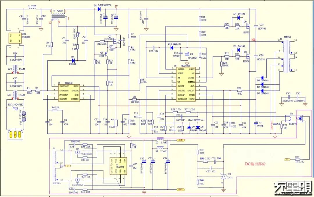TEA19161+TEA19162+TEA1995T方案的参考电路图。