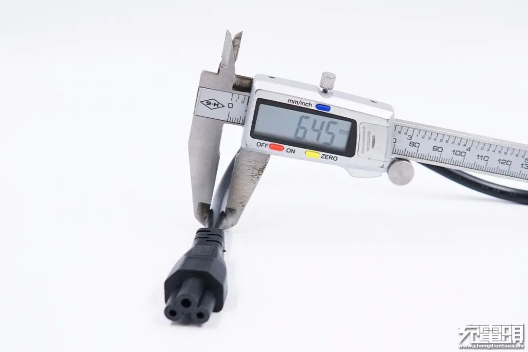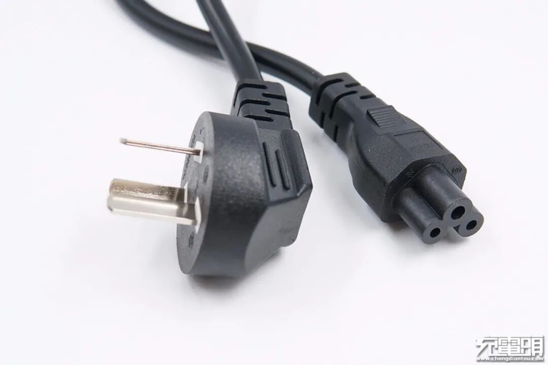 电源线两端分别是三脚插头和梅花插头,线头做了抗弯折和磨砂处理,并有凸齿设计,方便用户进行使用。