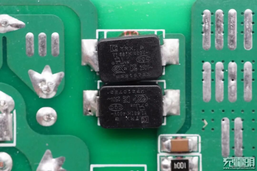两颗贴片Y电容来自四川特锐祥科技股份有限公司,具有体积小、重量轻等特色,非常适合应用于氮化镓快充这类高密度电源产品中。