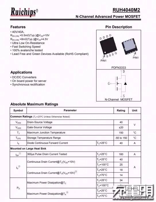 输出VBUS开关采用锐骏半导体RUH4040M2。