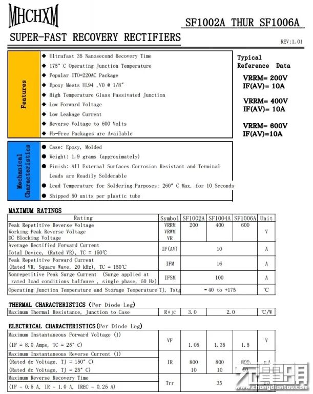 海矽美超快恢复二极管SFF1006A,用于APFC整流。