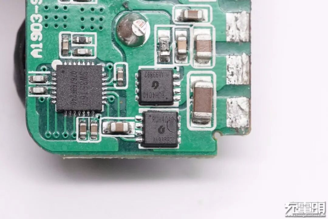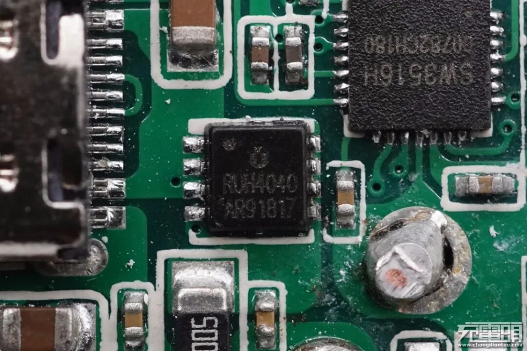 并且都外挂两颗锐骏半导体RUH4040M2来为USB-A口输出同步整流降压,NMOS,耐压40V。