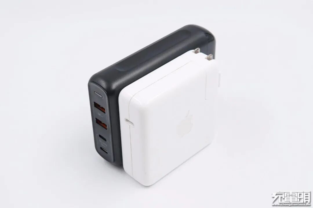 和苹果96W充电器大小直观对比,机身要长一些。