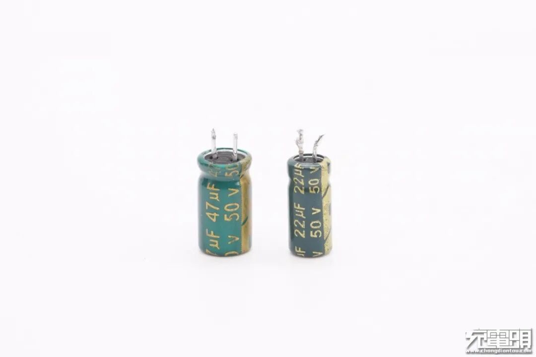 两颗小电容也是Fullcon品牌,规格分别是50V 47μF和50V 22μF,用于主控芯片供电。