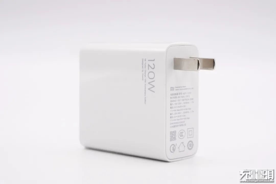机身正面靠近插脚处设有120W MI Turbo Charge 10th Anniversary Edition Designed by Xiaomi标识。