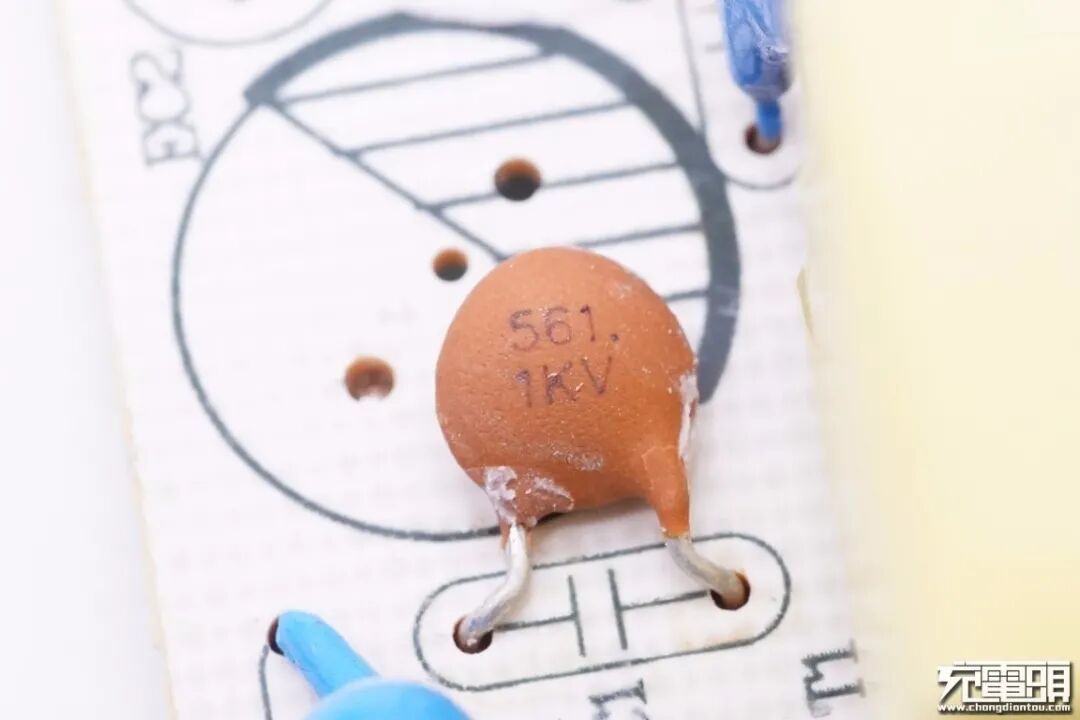 另一颗褐色高压瓷片电容特写,耐压同样是1000V,560pF。