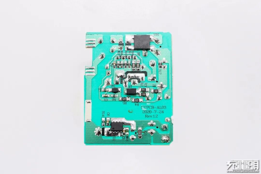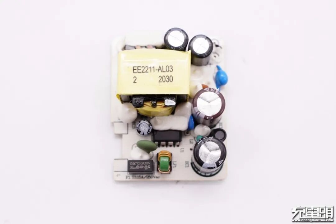 充电头网通过拆解了解到,这款充电器初级侧PWM主控芯片采用环球半导体G5138PK,次级侧采用环球半导体IW7707D同步整流芯片,两颗芯片集成度高,大大简化电路以及降低成本。此外PCB板上元器件布局稀疏,不易积热,并且都进行了打胶处理,内部稳定性和散热性能有保证,适应长时间工作。初次级均采用优质电容滤波,输出纯净。