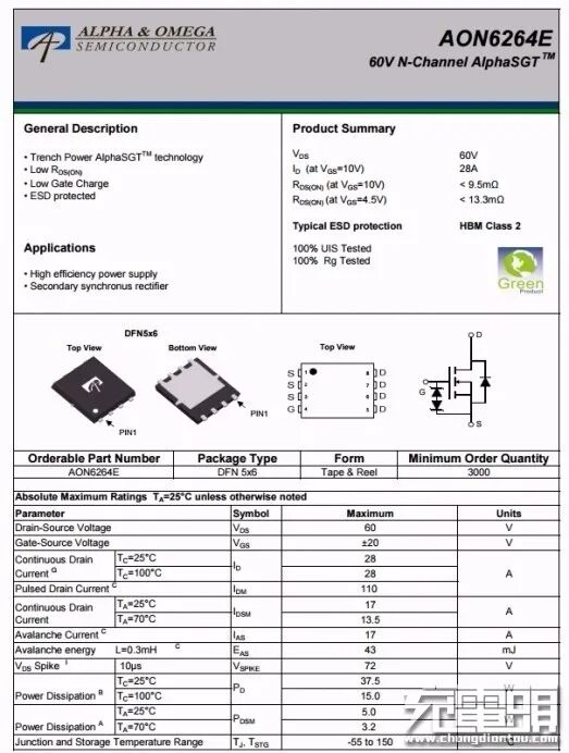 AOS AON6264E详细资料信息。