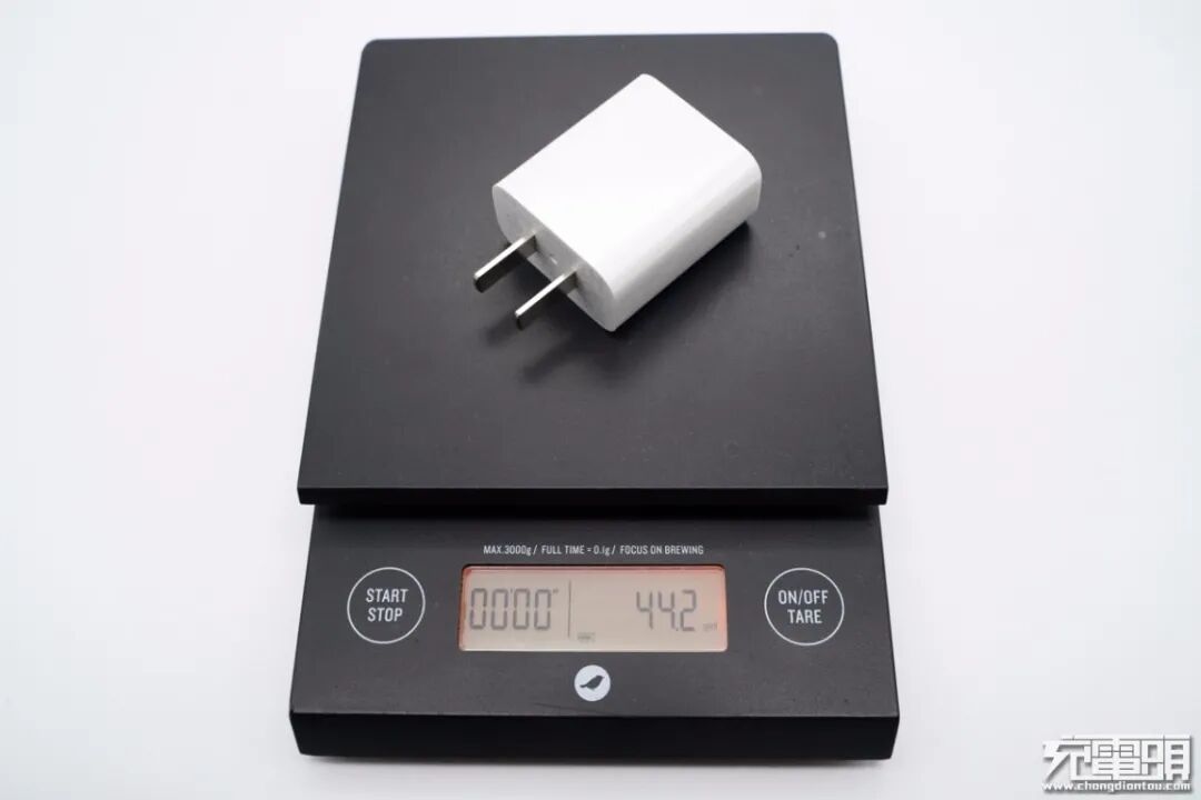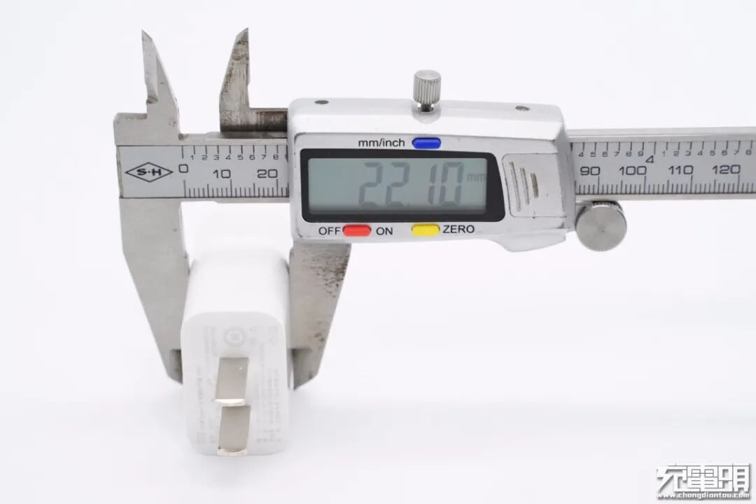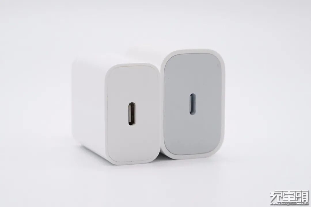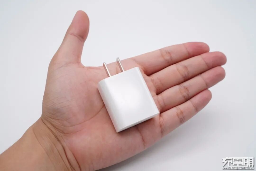 和苹果20W充电器大小直观对比,体积要小一些。