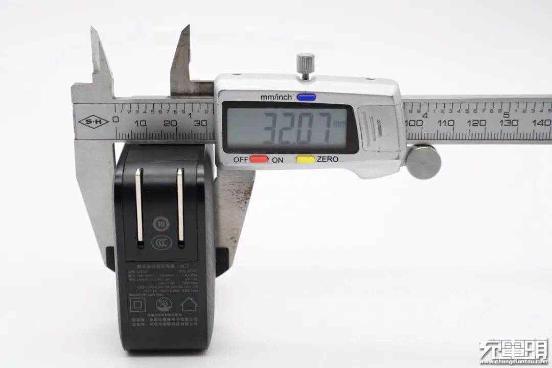 拿在手上的直观感受,即使配备了4个接口,仍将充电头体积压缩得很小。