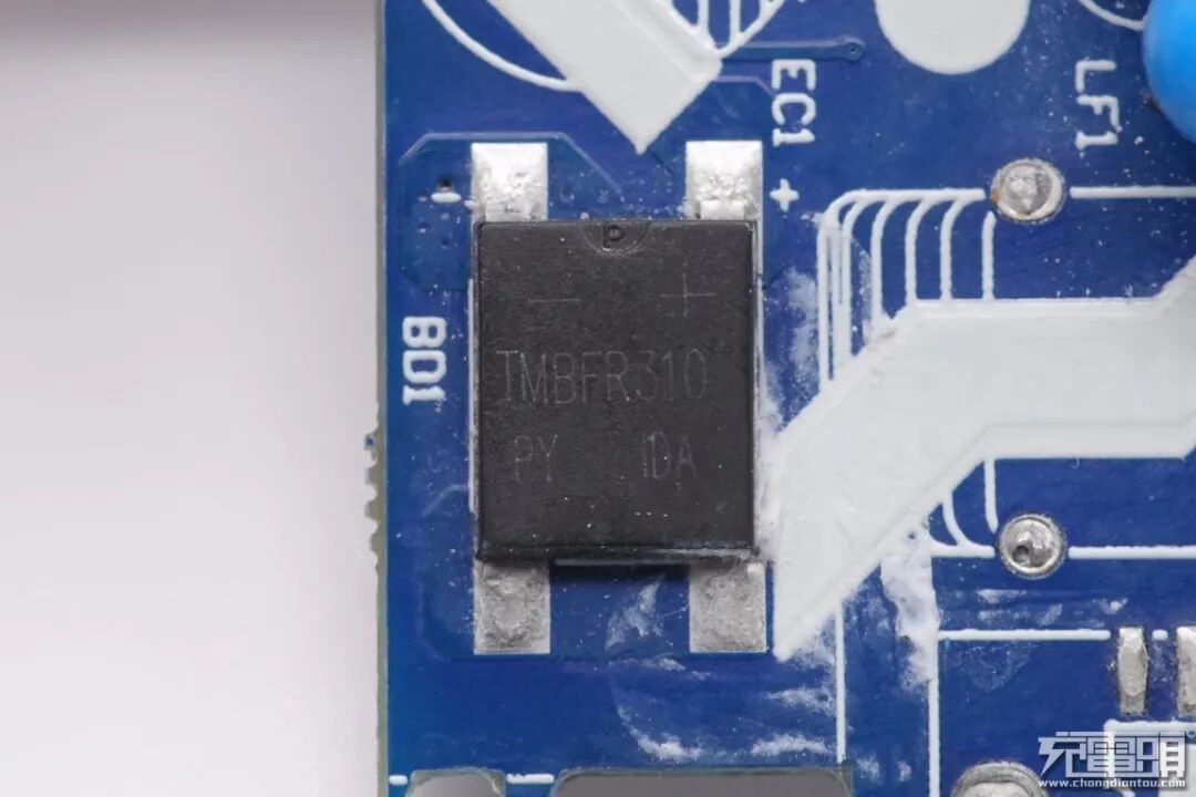 打胶的地方分别设有整流桥和充电器主控芯片。