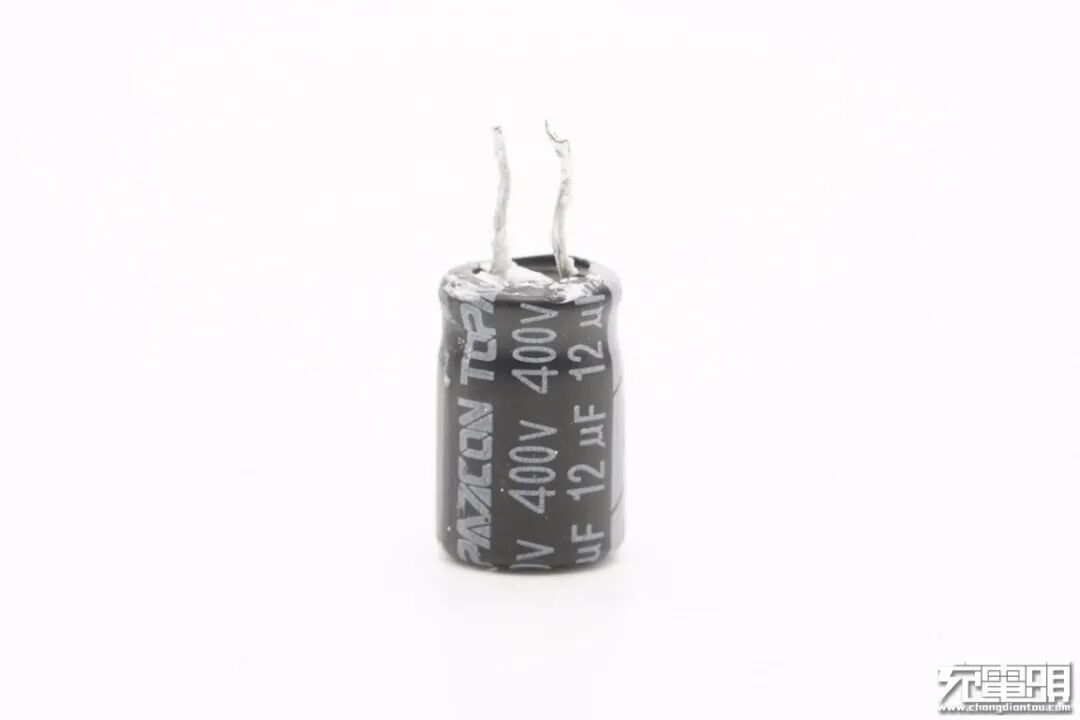 输入端共设有三颗高压滤波电解电容,均来自广东黄宝石电子科技有限公司。其中一颗规格为400V 12μF。