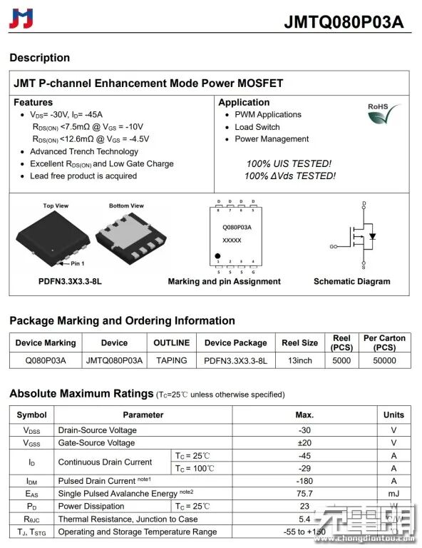 捷捷微 JMTQ080P03A 详细资料。