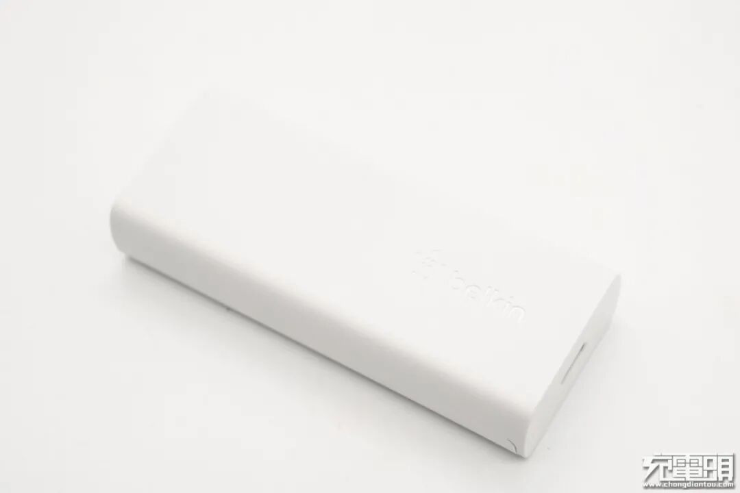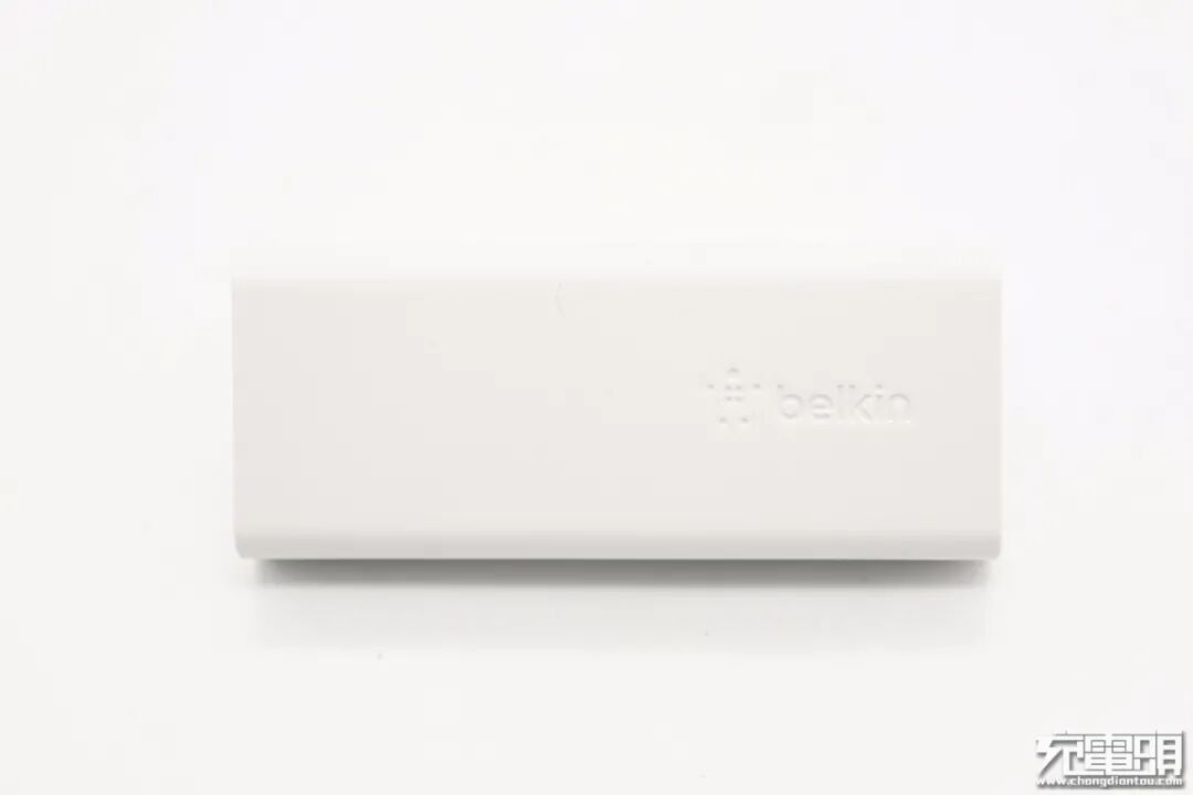贝尔金20W氮化镓充电器采用长条直板造型设计,整体看去很像一块饼干。充电器采用白色机身壳,表面磨砂处理,设计十分简洁。