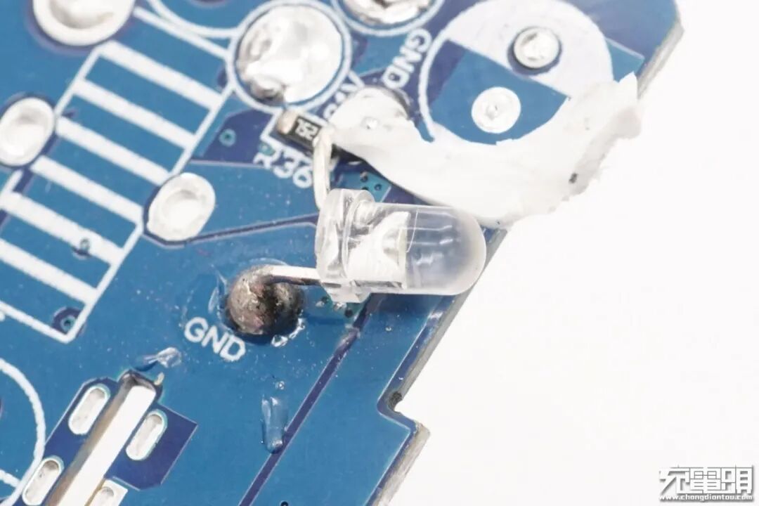将输入端外壳拆开,插脚和PCB板通过导线连接通电,导线打胶绝缘。