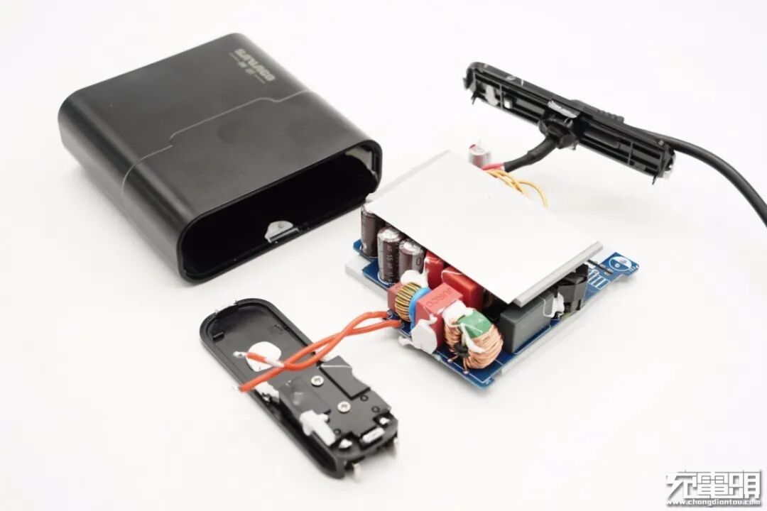 虽说自带圆头输出线缆很少见,但这款充电器在次级侧也预留有足够的空间,随时可以根据客户需求,设计不同类型的多口PD快充充电器,十分灵活。