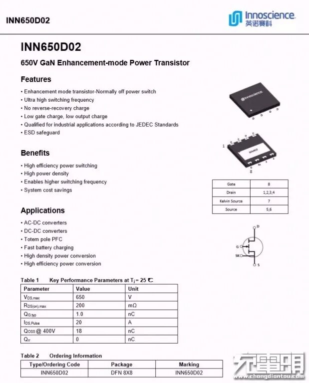 英诺赛科向充电头网透露,INN650D02 “InnoGaN”开关管基于业界领先的8英寸生产加工工艺,是目前市面上最先量产的先进制程氮化镓功率器件,这项技术的大规模商用将推动氮化镓快充的快速普及。