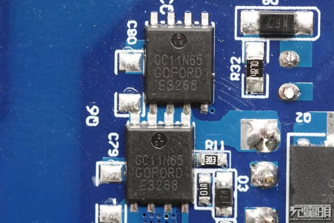 LLC半桥采用两颗谷峰GC11N65D5 NMOS管,耐压650V,导阻330mΩ,DFN5*6封装。