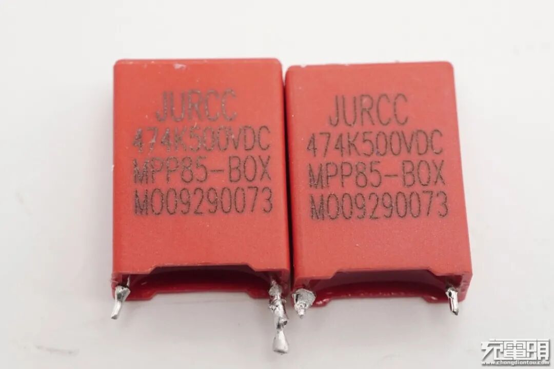 两颗红色薄膜滤波电容也是来自捷威电子,容量0.47μF。
