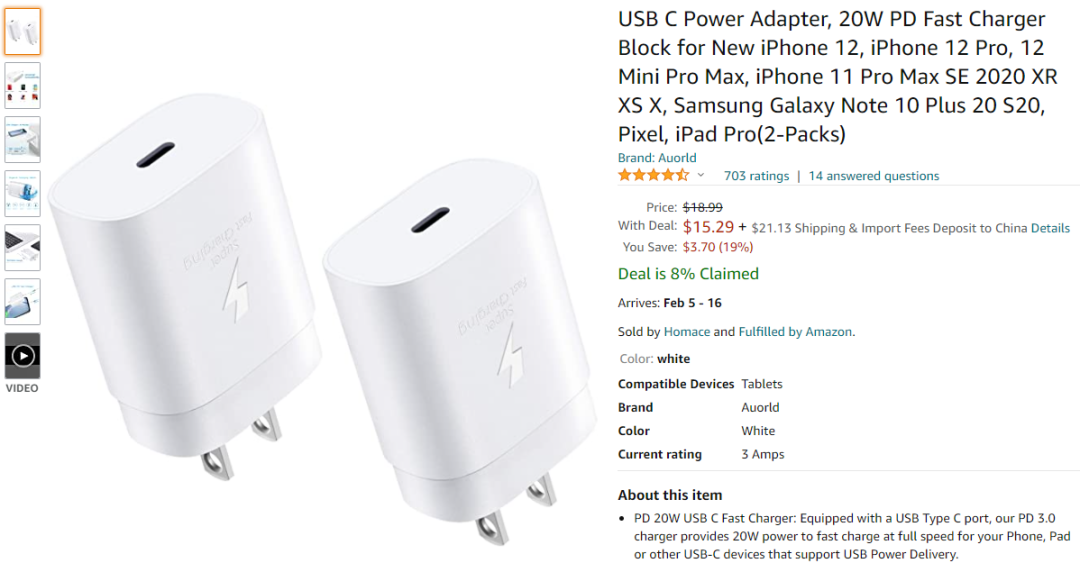 亚马逊20W PD充电器销量排行榜上的十款产品介绍完毕,因为都是20W 快充,在性能方面差距不大,都能在半小时内为iPhone 12充入50%以上的电量,所以我们没有着重强调他们。并且部分产品我们也没有拿到,本着实事求是的原则,我们没有给出详细意见,只是根据产品在亚马逊的宣传来进行描述。