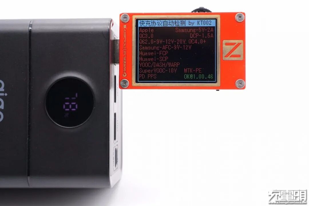 另外使用KT002检测发现USB-A2口输出协议和A1口的完全相同,可盲插使用。