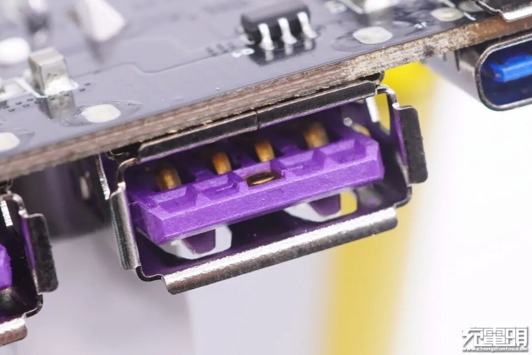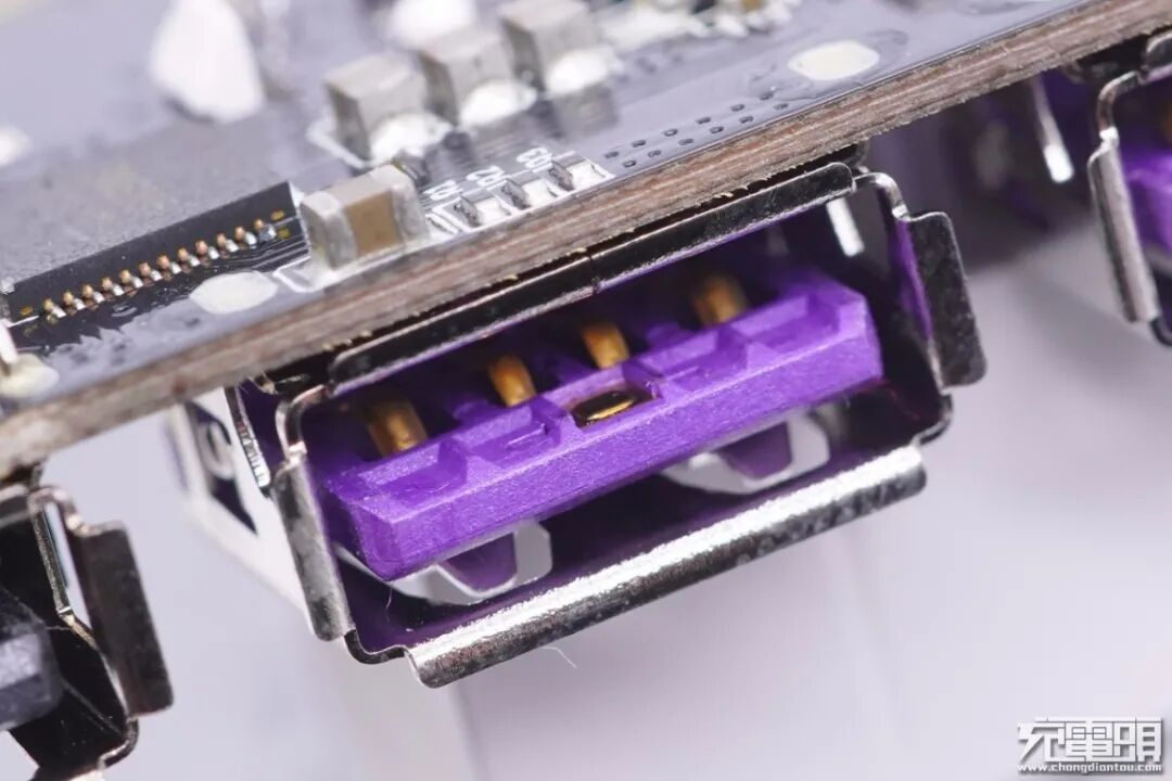 USB-A1母座特写,正负极加宽,前端设有特殊触点。