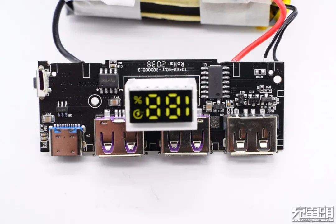 无标单片机用于驱动数码管进行移动电源电量显示。