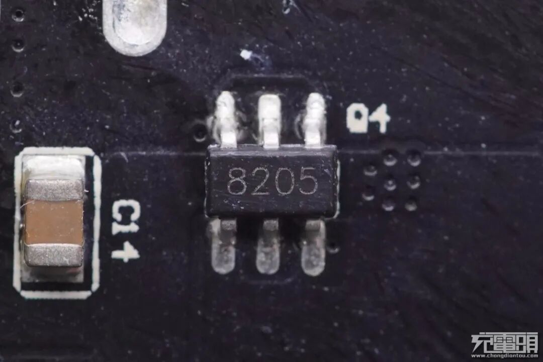 每个接口都配有8205 MOS管进行快充切换,快充输出时关闭其他端口。