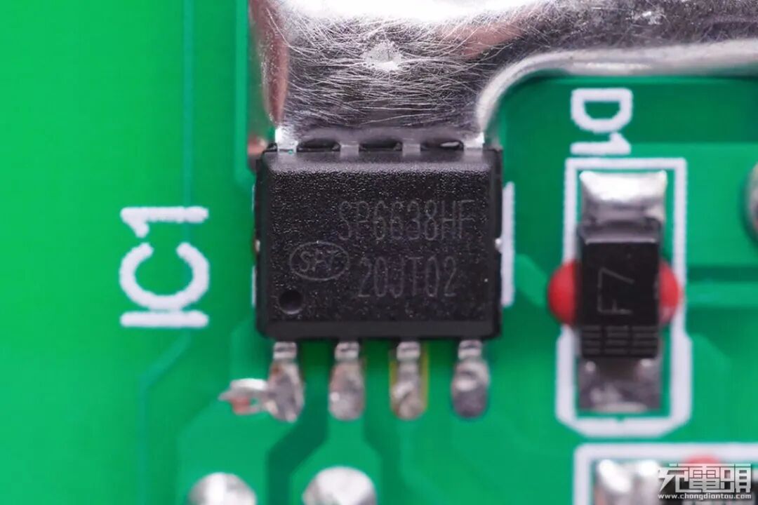 充电头网通过拆解了解到,内部AC插孔模块以及充电器模块均使用螺丝进行固定,十分稳固。充电器电路板为扇形,板子上的元器件分布稀疏,不易积热,同时机身壳底部也设有散热孔,保证了产品的整体散热性能。充电器采用无锡硅动力SP6638HF+SP6518F高集成、高性能快充方案,输出端协议芯片采用云矽半导体XPD738,控制1A1C双口输出,芯片通过了USB PD3.0认证,性能可靠。开关电源内部电容采用400V,按照110-220V宽电压环境设计,国内也可正常使用。