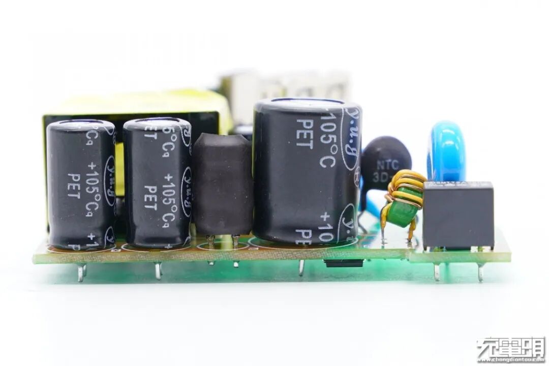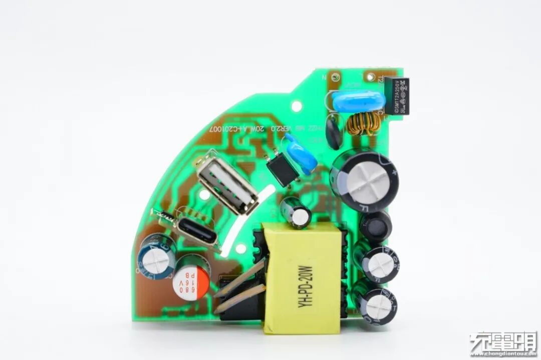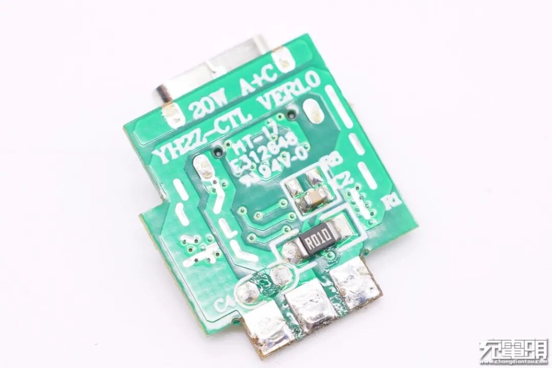 输出端USB-A母座垂直焊接在主板上,USB-C母座使用协议小板垂直焊接。