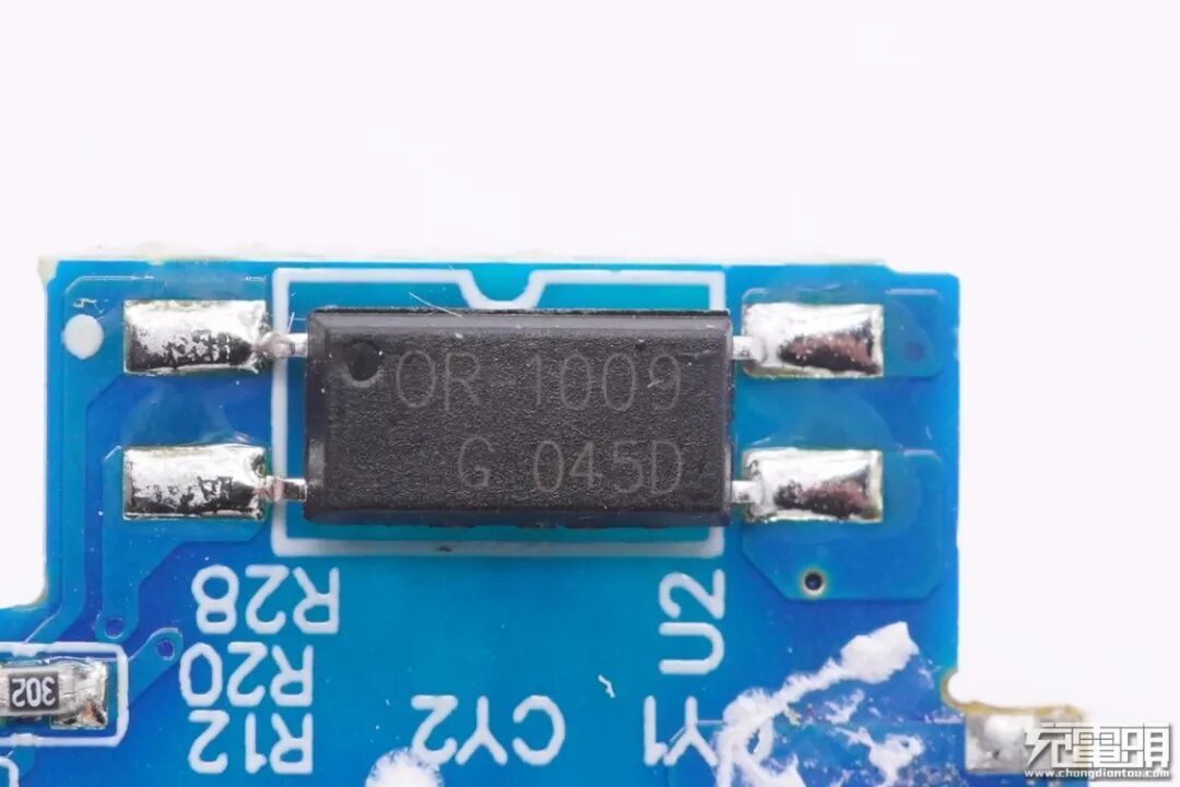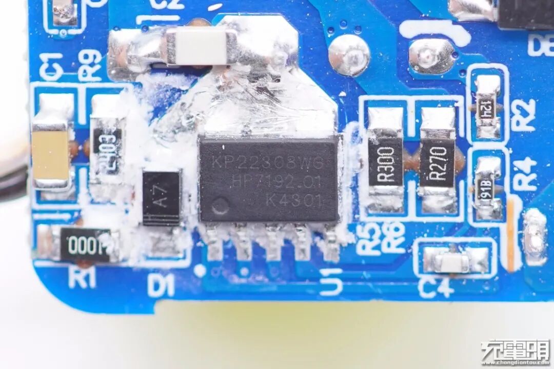 输入端小板背面,充电器PWM主控芯片打胶处理。