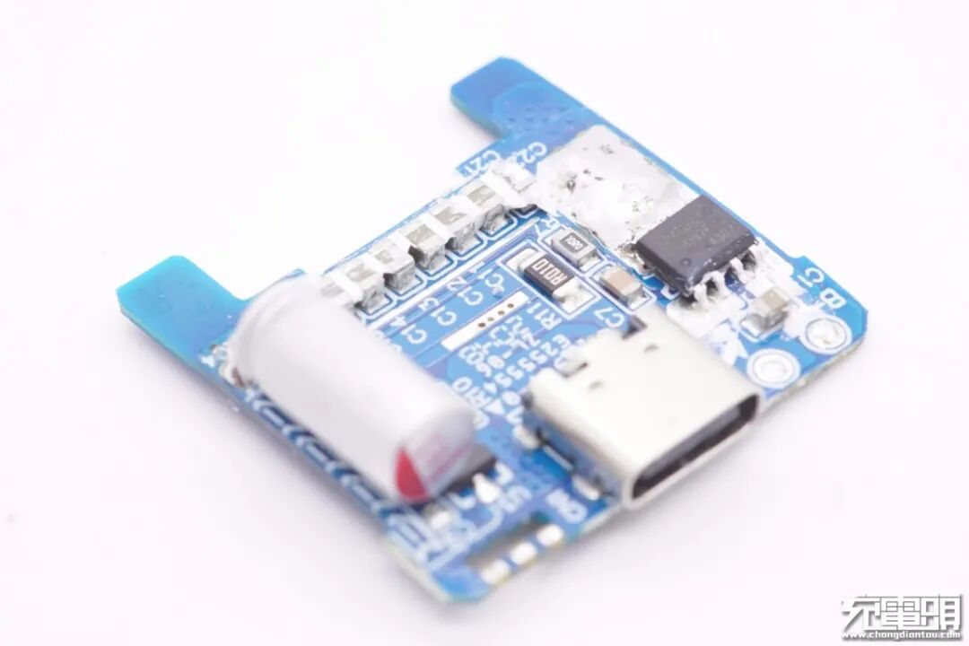 输出端小板背面设有协议芯片和VBUS开关管。