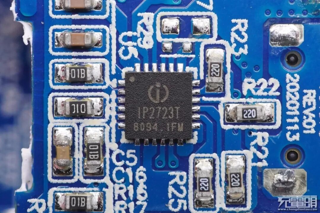 USB PD协议芯片采用英集芯IP2723T。该芯片已通过USB IF协会PD3.0 PPS认证,TID:3135。是一款集成多种协议、用于USB输出端口的快充协议IC。