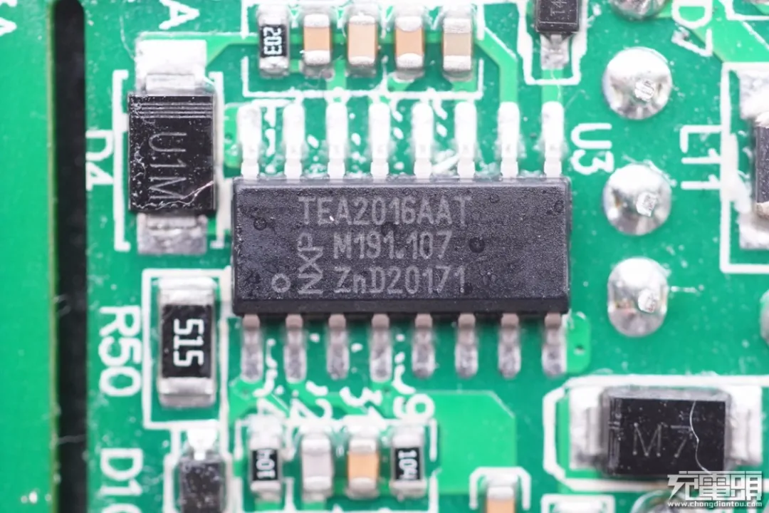 充电头网通过拆解发现,这款充电器内置PFC升压电路,采用时下热门的恩智浦TEA2016AAT+TEA1995T高性能LLC架构,PFC级升压开关管采用纳微NV6125,LLC级高压开关管采用谷峰GC11N65D,同步整流管采用维安WMB048NV6LG2,组成固定电压输出的开关电源。
