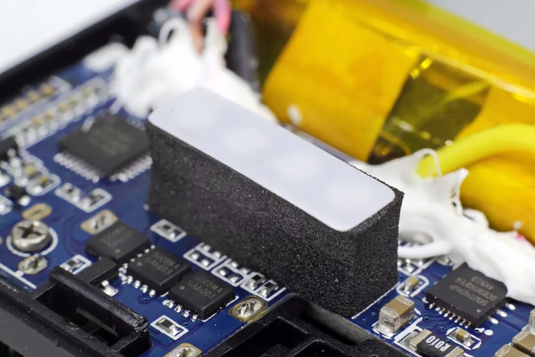 拆掉螺丝取出PCB板和电芯,电芯另一面也贴有泡棉胶和双面胶进行固定保护。