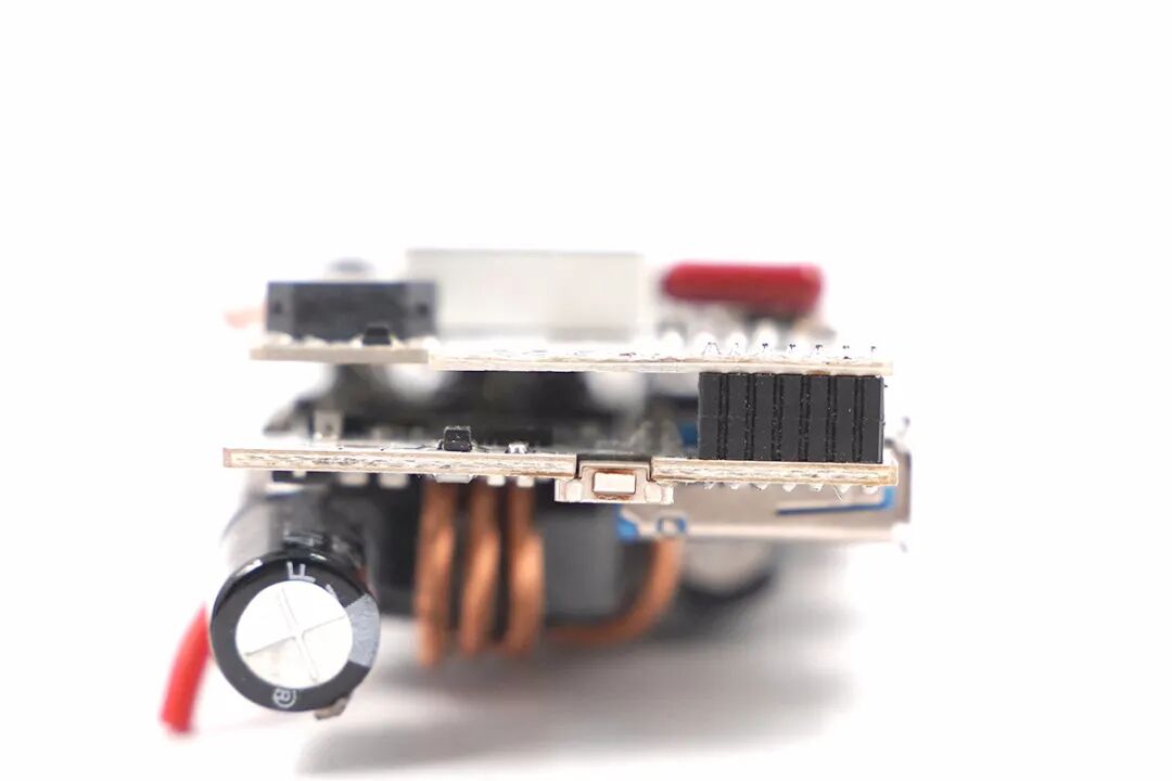 USB和无线充两块电路板通过排针连接。