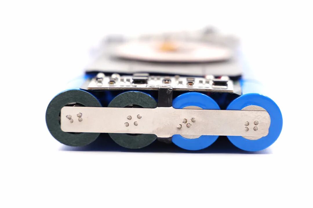 8颗电芯采用2并4串连接方式,均使用镍片点焊连接,并在每颗电芯正极均粘贴青稞绝缘纸保护。