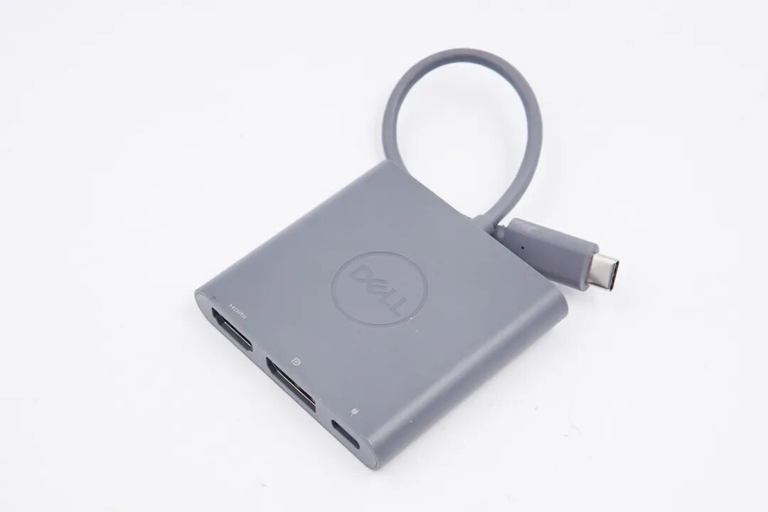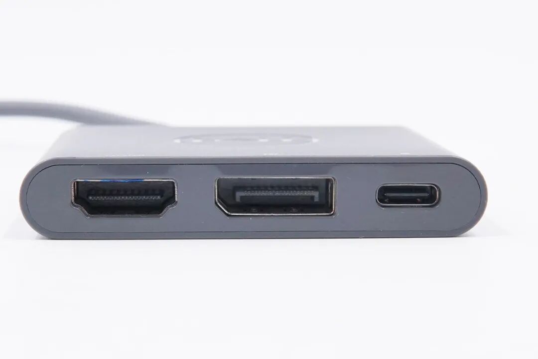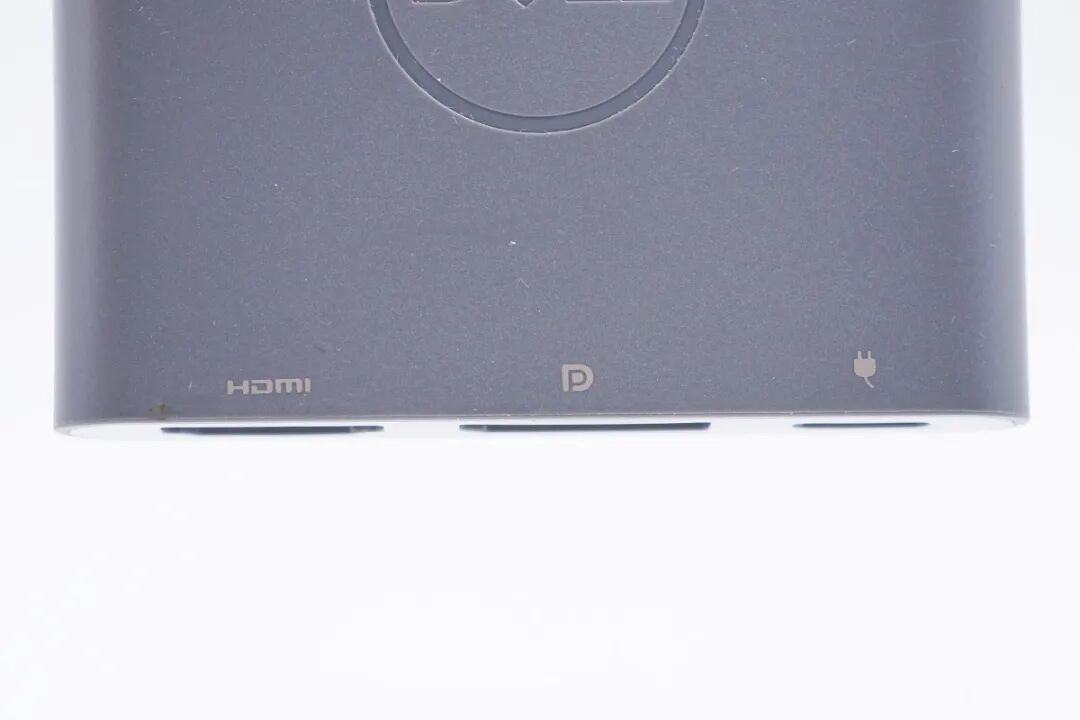 戴尔这款三合一扩展坞自带USB-C线缆,机身带线整体呈灰色,此外机身方正扁平,体积非常的小,携带起来很方便。