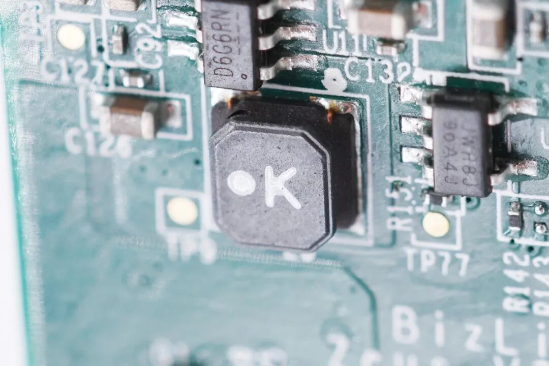 旁边是一颗工字电感,顶部有类似人的标识。