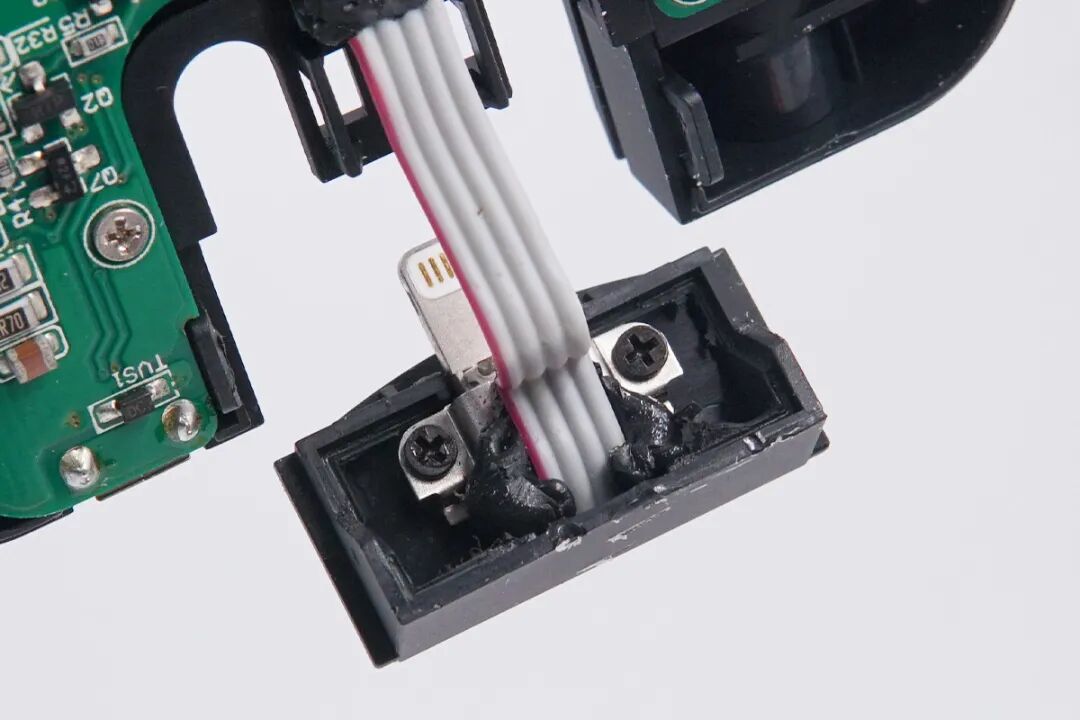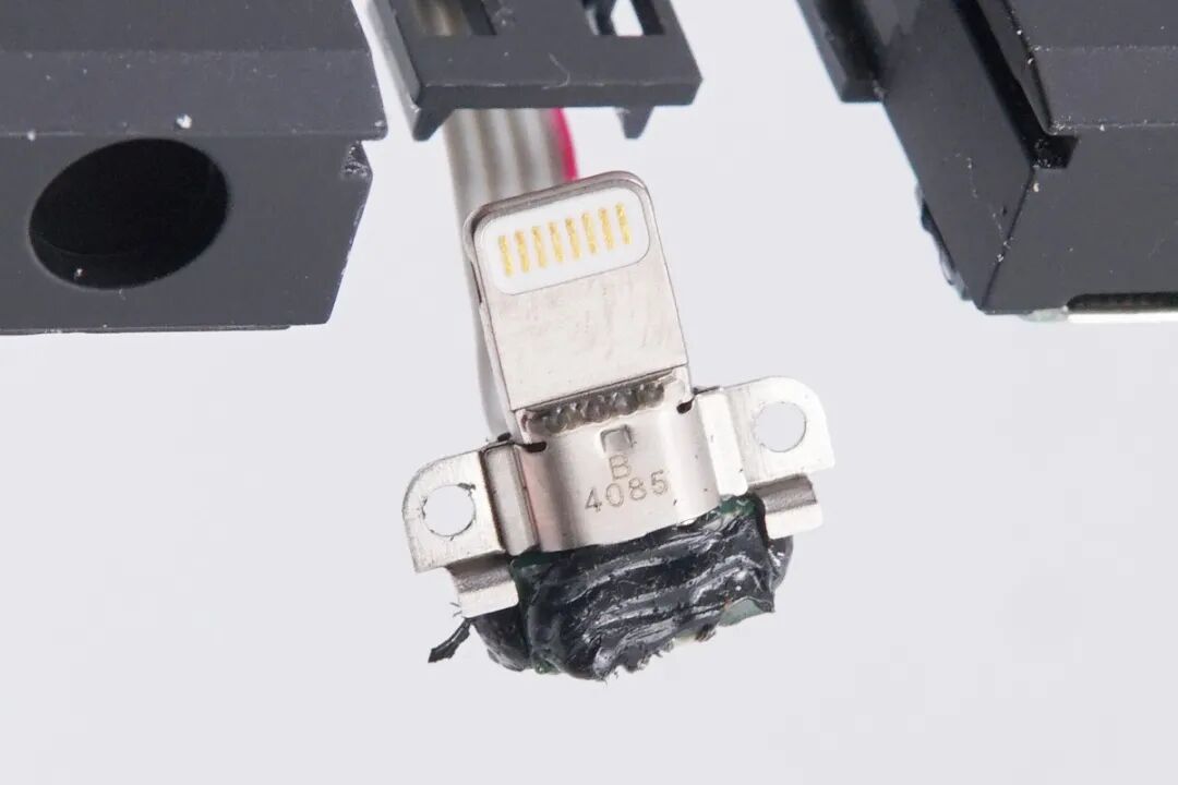 Lightning端子打胶和使用螺丝固定。