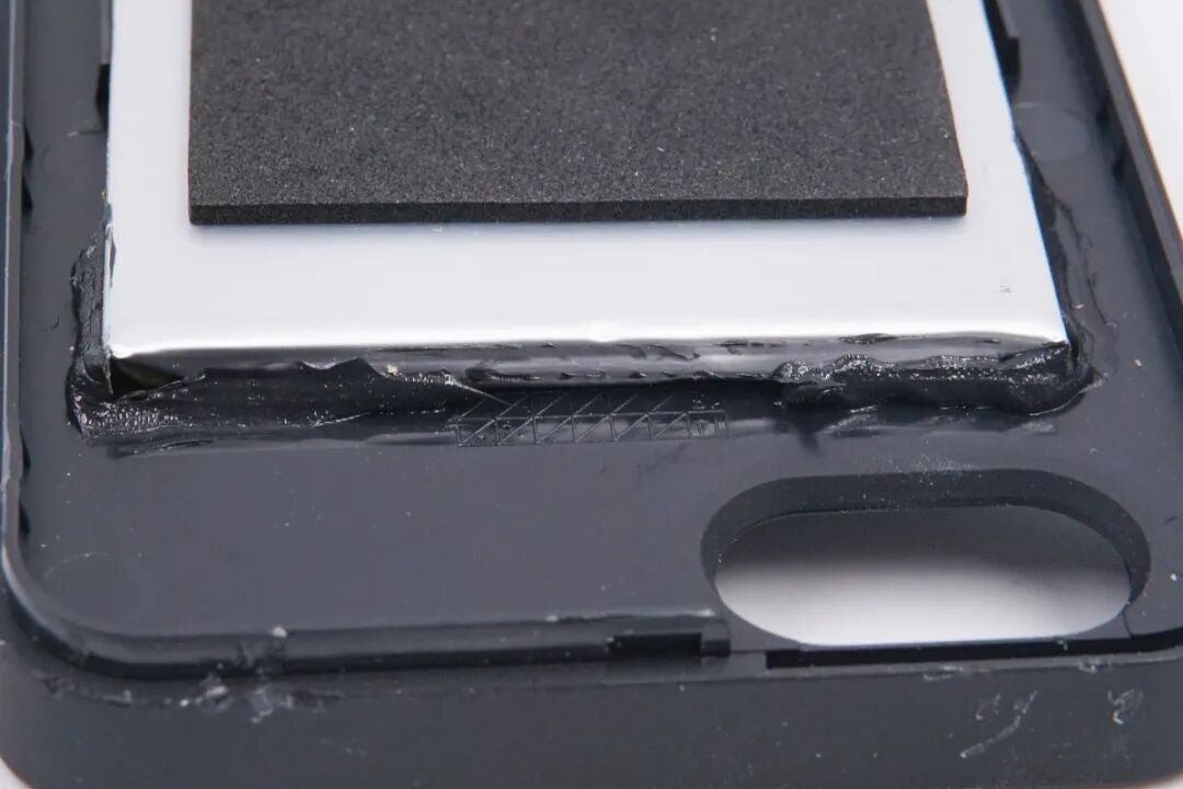 电芯上贴有泡棉保护,边缘打胶固定。