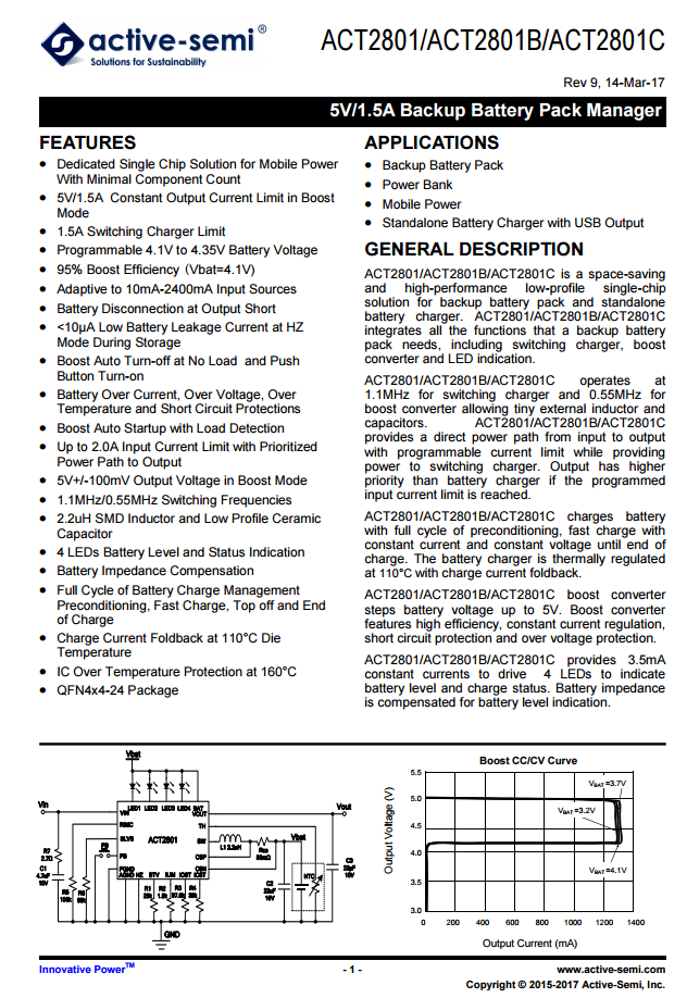 移动电源主控芯片采用Active-semi的ACT2801C。