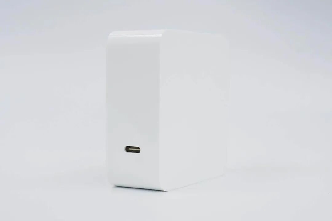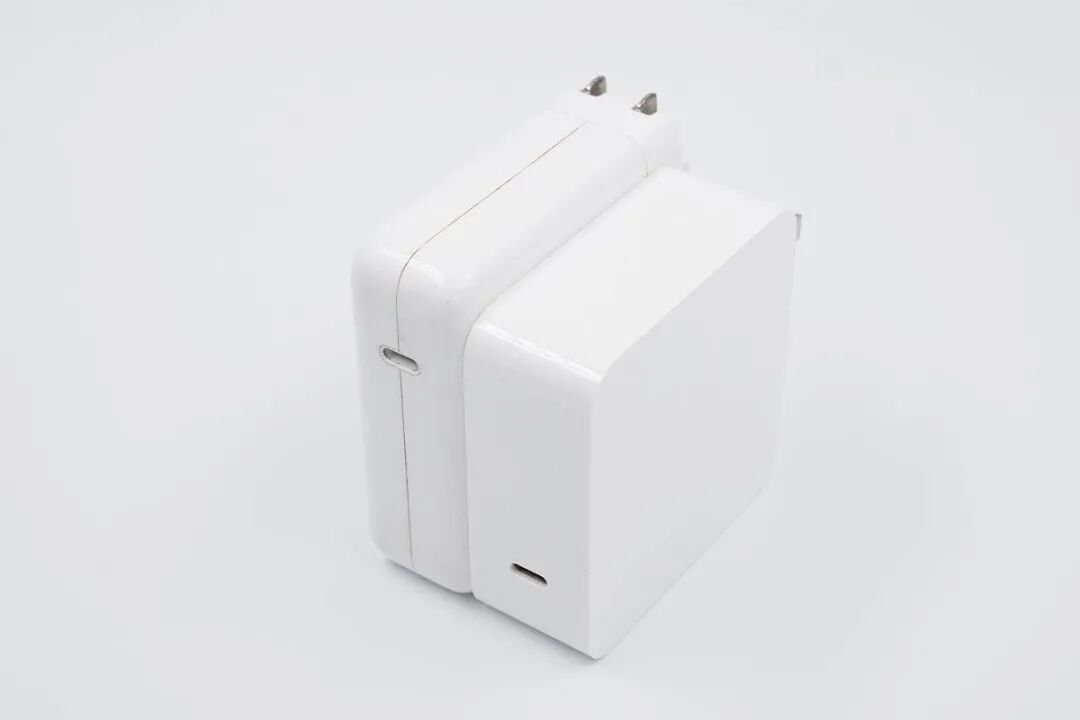 和苹果96W充电器直观对比,功率更大,体积反倒还要小一圈。