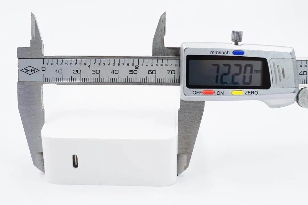 使用游标卡尺实测充电器机身高度为72.14mm。