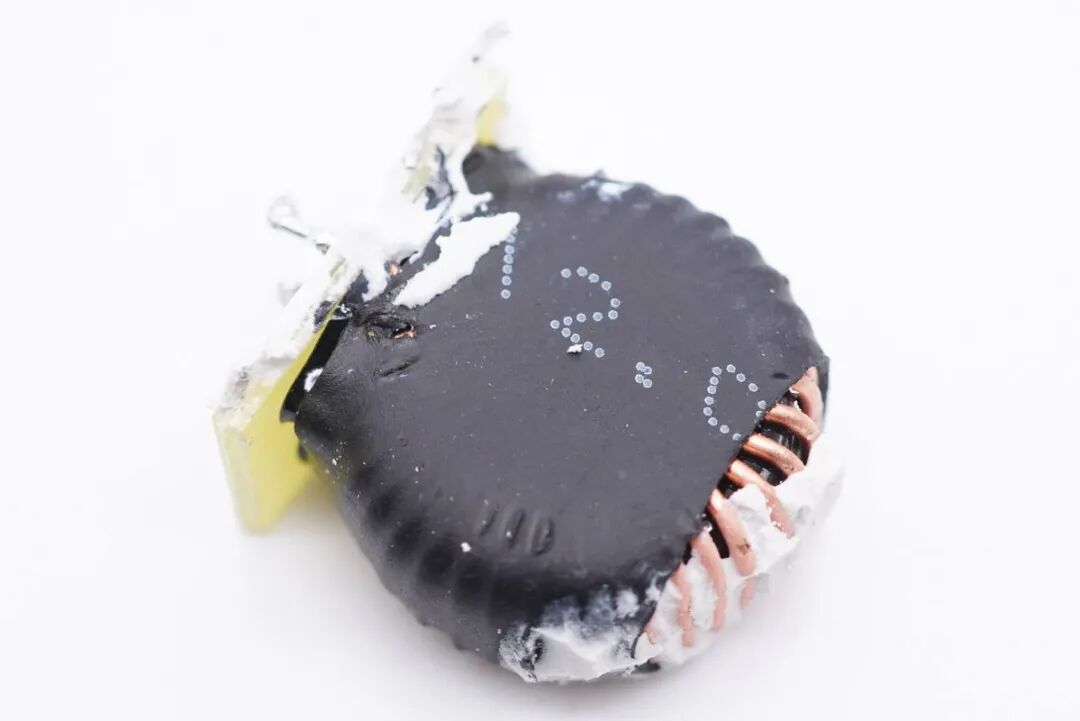 另一颗共模电感外套绝缘管,底部设有小板来和主板进行隔离,加强绝缘。