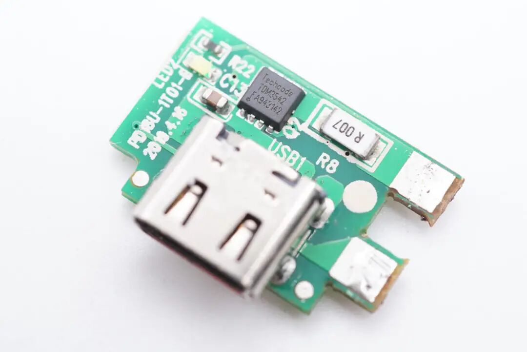 将小板拆下,正面设有LED指示灯、输出VBUS开关管和USB母座。