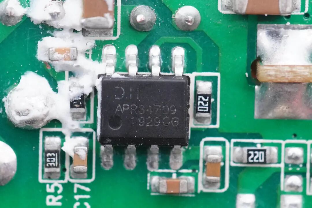 充电头网通过拆解了解到,充电器初次级元器件布局层次分成清晰,并且都打胶处理,输出端小板还套上塑料壳加固和隔离。充电器采用达迩AP39303+APR34709高集成18W快充方案,协议芯片采用耕源CY2332。