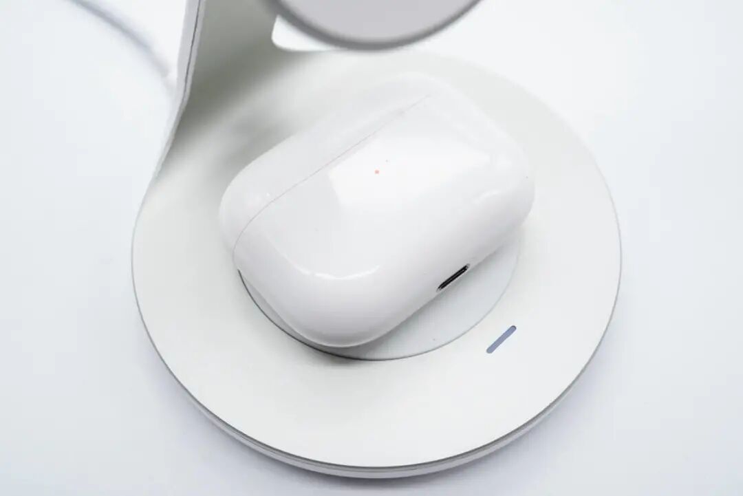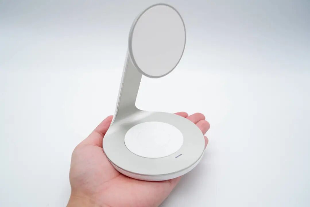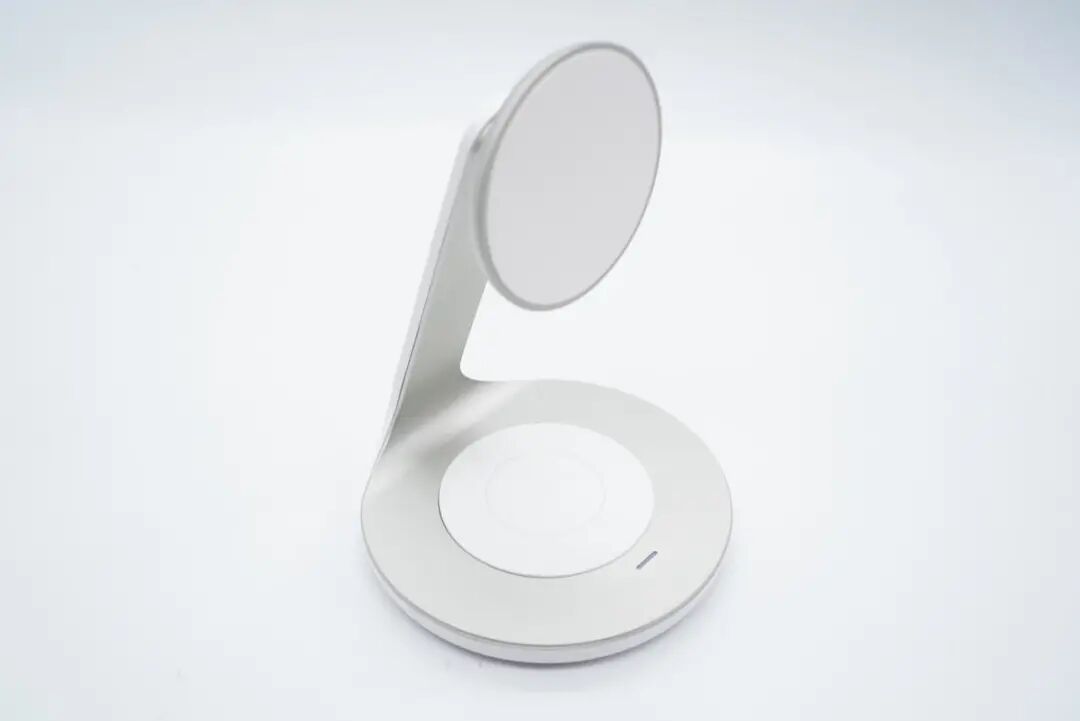 近日充电头网拿到了安克一款磁吸式双项无线充电器,产品采用立体机身造型设计,放在桌面上不会占用太多空间。另外支持5W和7.5W无线充,可同时为耳机和iPhone手机进行充电。